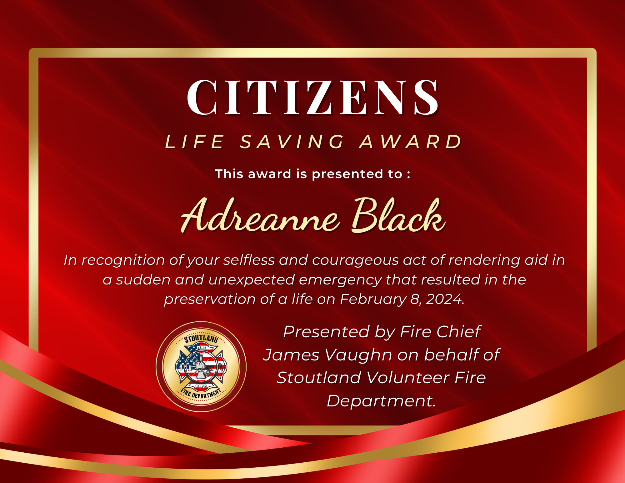 “Thank you to the individuals involved in the rescue effort that day. Everyone worked together well to achieve our common goal: to save a life.” ~Stoutland Fire Chief James Vaughn