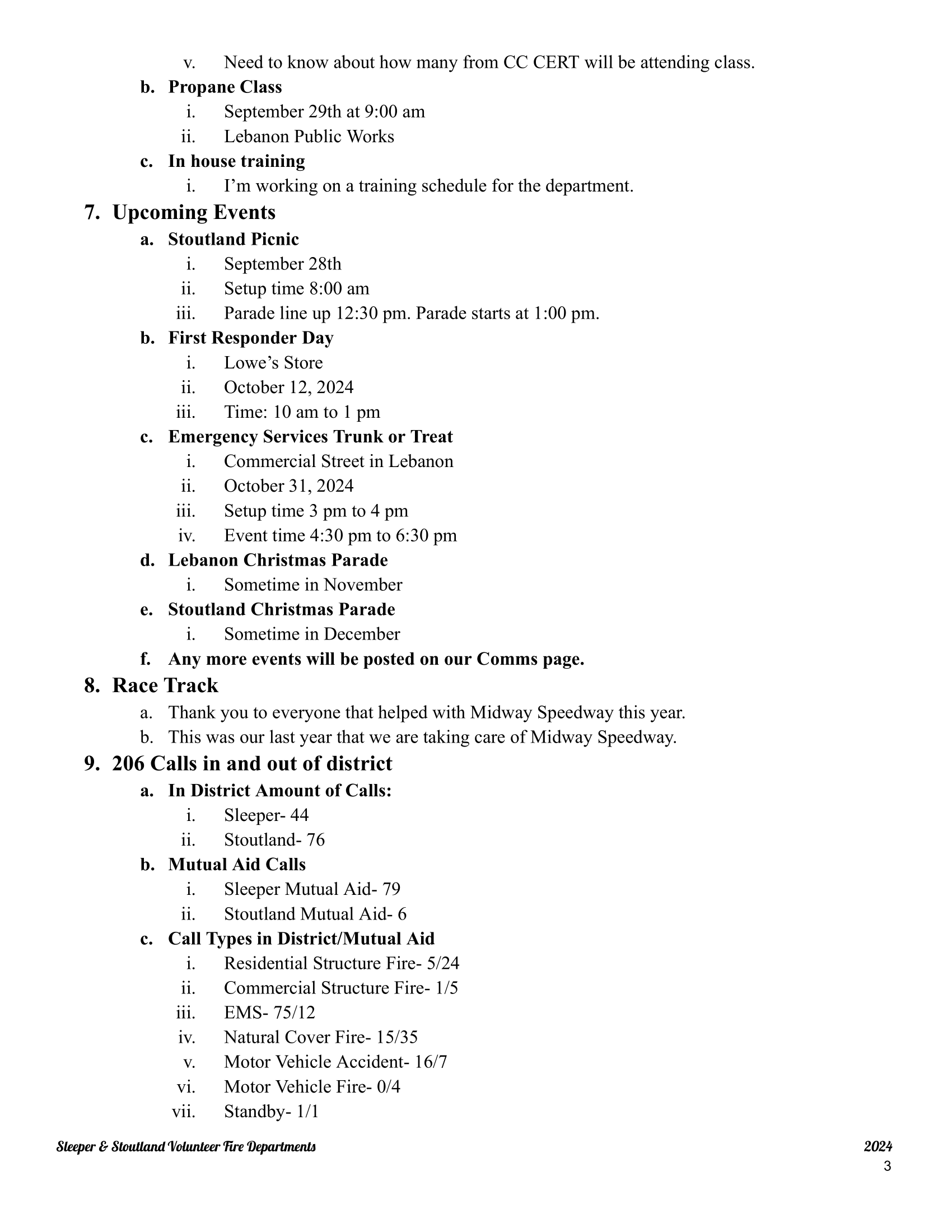 We had a packed agenda for our September 28th Duty Crew and followed it up with the Stoutland Parade.