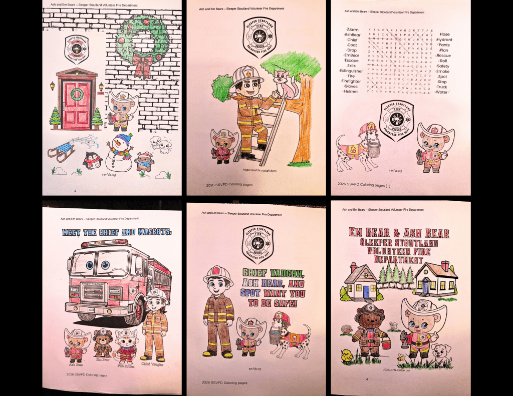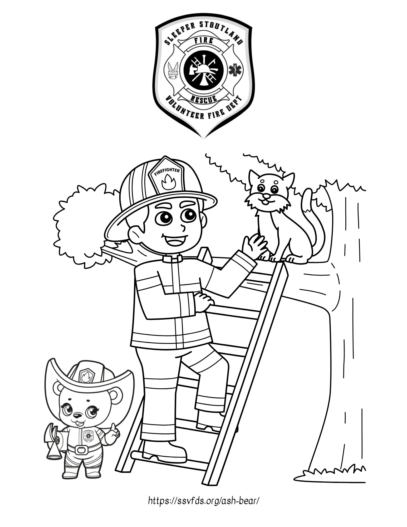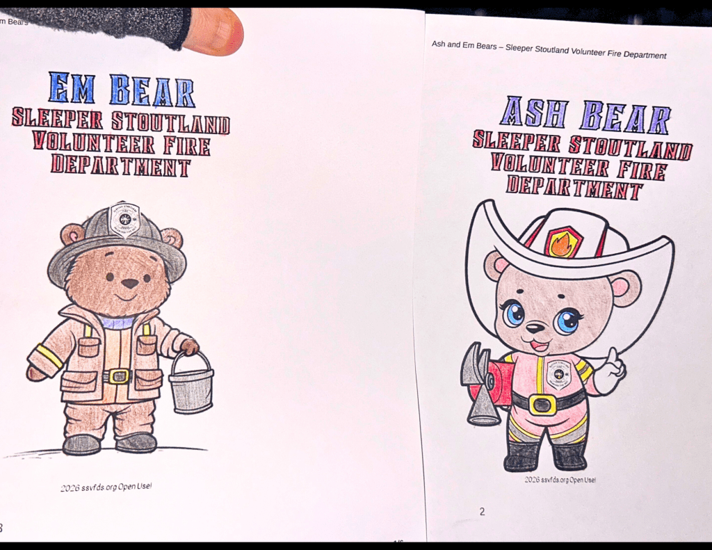 Hi, there! My name is Ash Bear and I am Smokey Bear’s cousin! My little brother, Em Bear, is new to the mascot and fire service and wanted to help, too!
