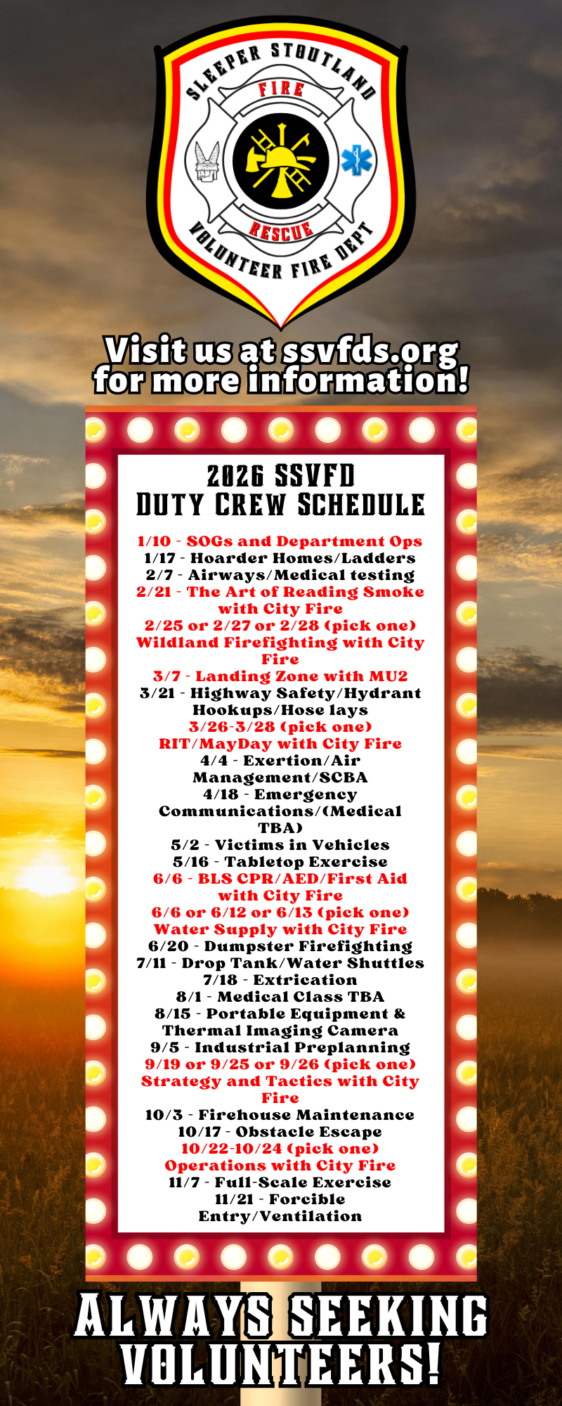 ALL meetings and duty crews are open to the public unless otherwise noted.